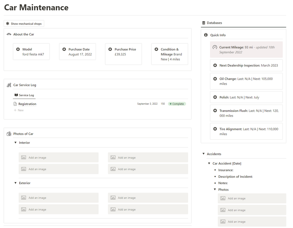 Introducing our Car Maintenance Notion template β your ultimate tool for keeping your vehicle in top shape!