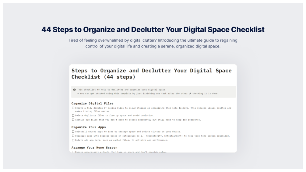 44 Steps to Organize and Declutter Your Digital Space Checklist